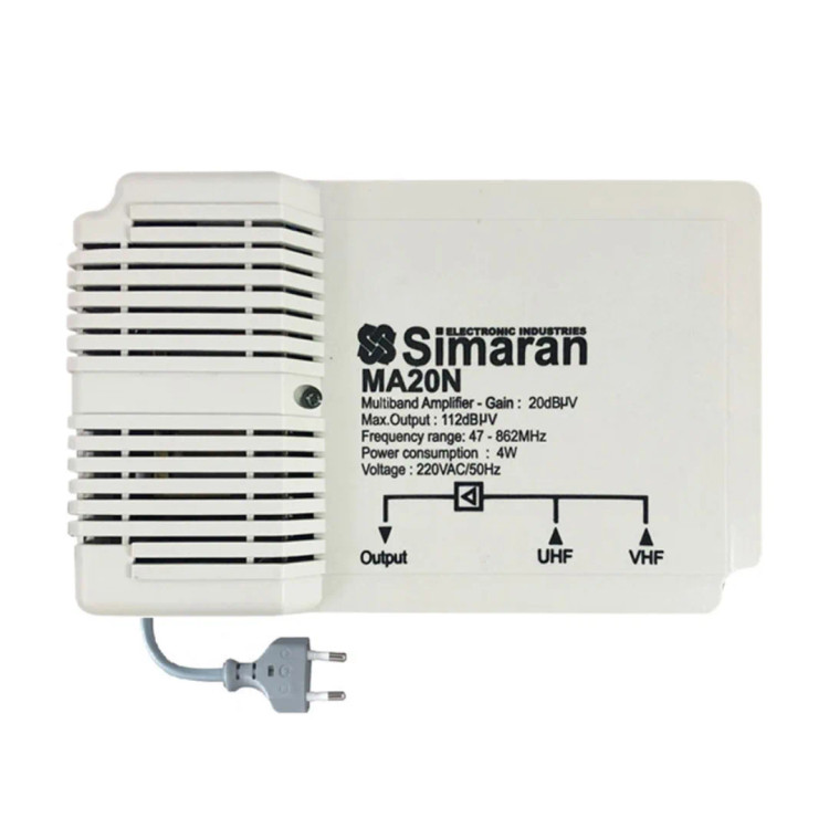 «امپلی فایر سیماران» مدل : MA توضیحات: 1تقویت کننده و نویز گیر 2قابل استفاده در آنتن مرکزی 3طول سیم 90 سانت 4اکولایزر ندارد جهت اطلاع از ها به مراجعه کنید