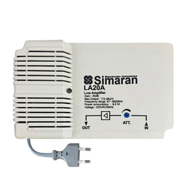 «آمپلی فایر سیماران» مدل : LA توضیحات: 1تقویت کننده و نویز گیر 2قابل استفاده در آنتن مرکزی 3طول سیم 90 سانت جهت اطلاع از ها به مراجعه کنید